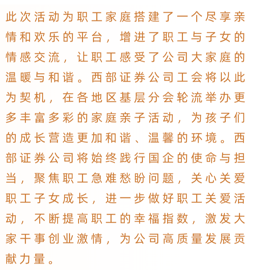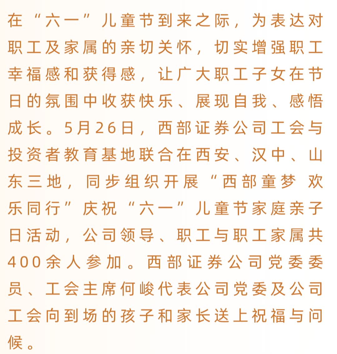 跨越山海 共筑童梦——西部证券公司工会组织职工共谱“六一”儿童节家庭亲子乐章