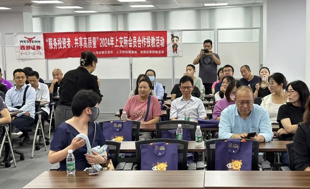 为深入贯彻落实中央金融工作会议精神以及新“国九条”部署要求,推动资本市场“1+N”政策措施落地见效,讲好上交所市场高质量发展故事,提振投资者信心。2024年7月26日,由上海证券交易所、西部证券联合主办的“服务投资者共享高质量”主题2024年会员合作投教活动在上交所北方基地成功举办。本次活动围绕《高质量发展的上交所ETF市场》《防范非法证券活动》两个主题内容,通过线下方式开展,共60余名投资者受邀参与。