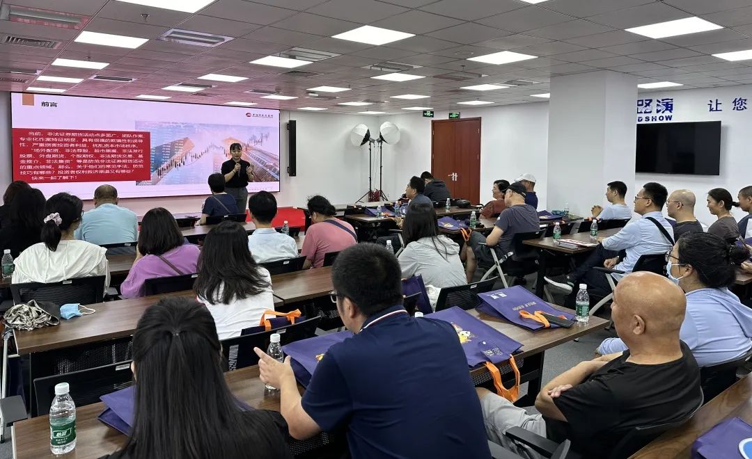 活动第一项分享内容,西部证券财富管理部周琳老师为在场投资者带来“防范非法证券活动”课程,详细介绍场外配资、非法荐股、股市黑嘴、非法期货交易等非法活动的定义和表现形式,并通过介绍日常“防非”小妙招以及投资者权利救济渠道,让投资者进一步了解参与非法证券活动的危害以及提高了防范非法证券活动的风险意识。