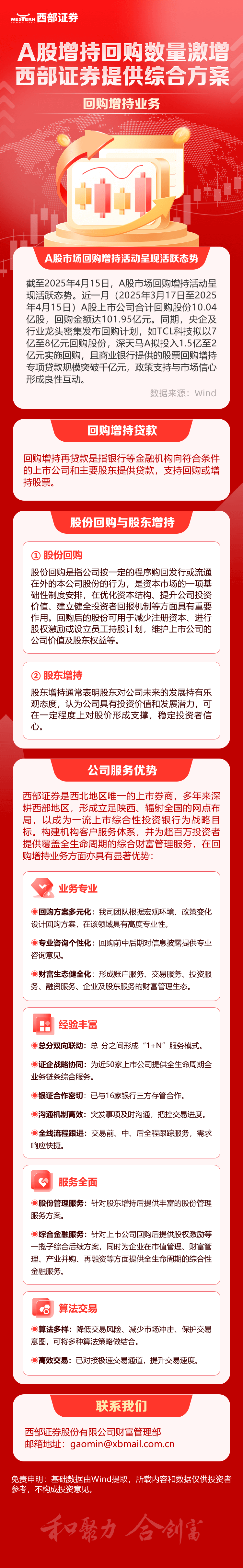 【西部动态】A股增持回购数量激增 西部证券提供综合方案