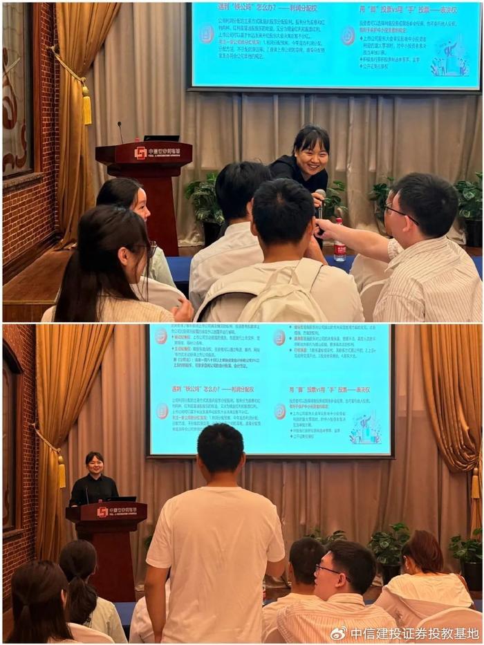 随后,西部证券投教基地讲师周琳带来了《投资者权益保护制度介绍》的分享。详细讲解了投资者享有的各项股东权利,强调“知权”是“行权”的前提,并系统介绍了《证券法》投资者保护专章的核心制度、“五位一体”的多元化维权救济体系以及“12386”中国证监会服务热线等维权渠道,为投资者依法、理性维护自身合法权益提供了清晰指引和有力保障。