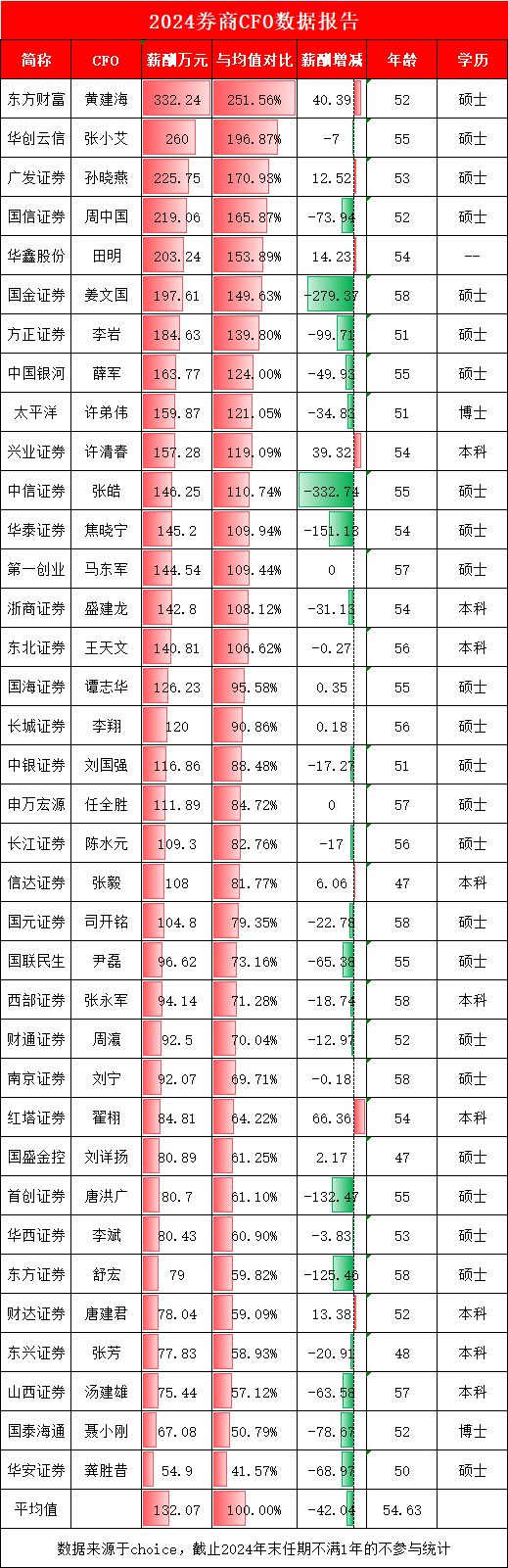 在券商行业的稳健发展中,财务总监的专业能力是公司财务安全的重要保障。2024年数据显示,券商行业CFO平均薪酬为132万元,而西部证券财务总监张永军的薪酬仅94.14万元,约为行业平均水平的七成一,明显低于行业CFO平均水准。