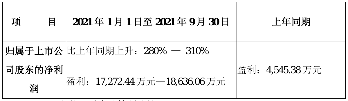 挖贝网10月8日,兴业科技(002674)近日发布2021年前三季度业绩预告公告,预计2021年前三季度实现归属于上市公司股东的净利润为1.73亿元–1.86亿元,比上年同期增加280%–310%。