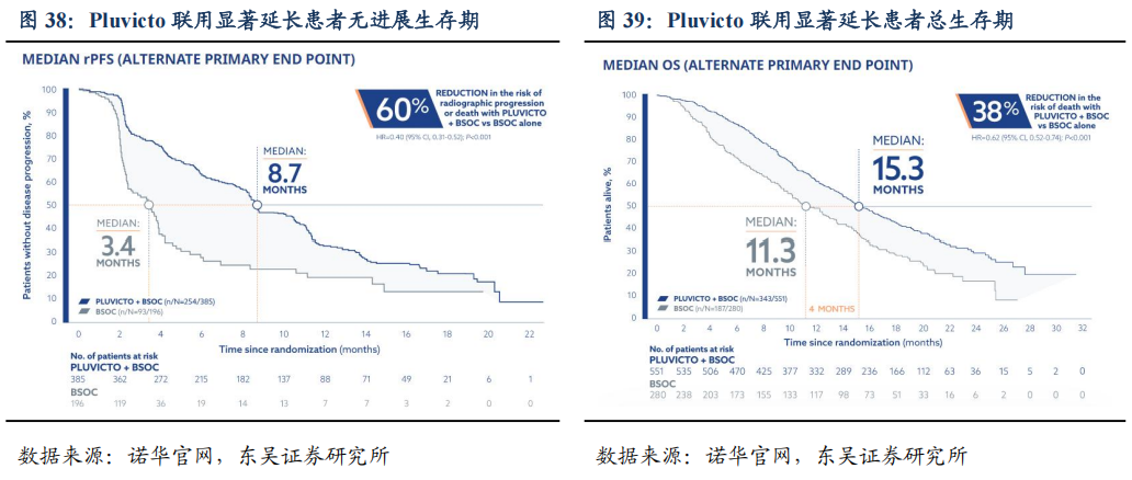 Pluvicto在rPFS、PS和ORR等方面疗效显著。基于关键性III期临床试验VISION(NCT03511664),Pluvicto+SoC(n=551)接受一次7.4GBq辐射量进行间隔6周的4个周期,相比于最佳标准治疗(BSoC,n=280),Pluvicto联合治疗可显著提升影像学无进展生存期(rPFS,8.7 vs 3.4个月,HR=0.40,95%[CI] 0.31-0.52,P .001),总生存期(OS,15.3 vs 11.3个月,HR=0.62,95%[CI] 0.52-0.74,P .001),客观缓解率(ORR,30% vs 2%);同时降低患者的死亡风险,放射学疾病进展或死亡风险。安全性较好,Pluvicto最常见的不良反应(≥20%)是疲劳、口干、恶心、贫血、食欲不振。