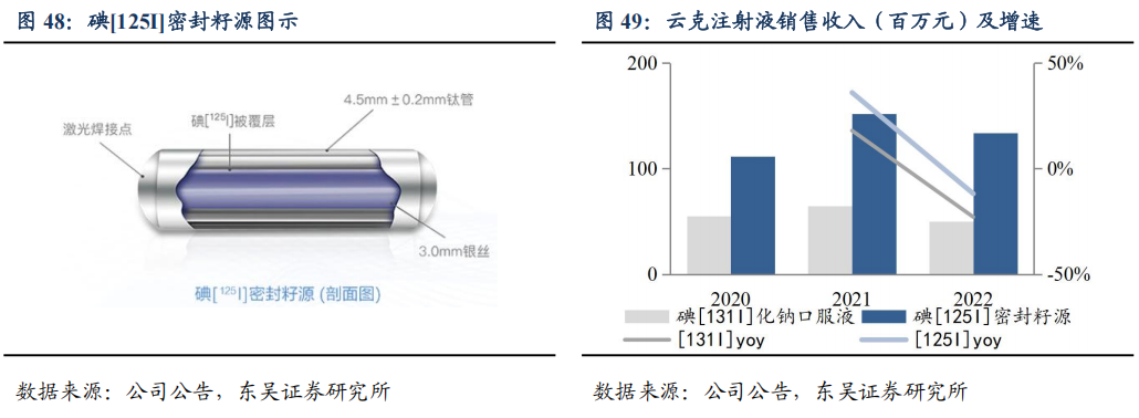 公司子公司上海欣科拥有重点产品包括(1)尿素[14C]胶囊:通过呼气检测碳-14标记的二氧化碳量,判断幽门螺旋杆菌感染的严重程度,有助于预防和治疗幽门螺旋杆菌感染引起的胃炎、胃溃疡、十二指肠溃疡等疾病。(2)碘[125I]密封籽源:属于医保乙类,通过体内植入密封性银棒,近距离放射γ射线以治疗肿瘤,防止肿瘤复发和转移。(3)碘[131I]化钠口服液:通过放射性β射线治疗甲状腺癌和甲亢。