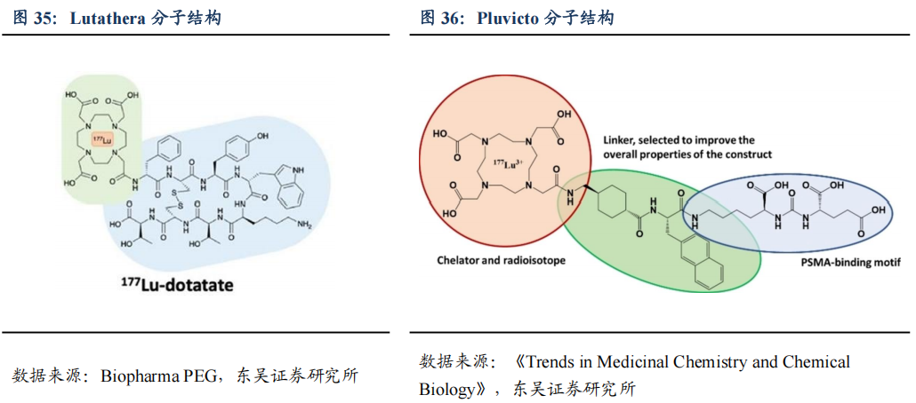 Lutathera(Lu-177-DOTATATE氧奥曲肽):2018年获得FDA批准上市,用于治疗SSTR阳性的胃肠胰神经内分泌肿瘤患者。Lutathera是首款FDA批准的放射性配体疗法,开启了核药靶向治疗的新时代。其药物靶向性是通过多肽结构Octreotide(奥曲肽),也证明了基于多肽分子开发RDC的可行性。尽管其适应症是市场较小的罕见病,首年当年便销售了1.67亿美元,并在疫情后恢复增长,2024年实现营收7.24亿美元(+19.7%),同时诺华正积极拓展小细胞肺癌(SCLC)和胶质母细胞瘤(GBM)等新适应症。