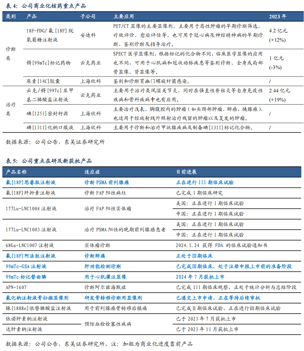 3.核药领域全链条布局,创新单品进度领先