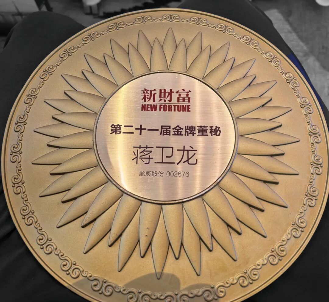 此次蒋卫龙先生获评“新财富金牌董秘”,不仅是对其个人专业能力的肯定,更充分体现了顺威股份在公司治理透明度、投资者关系管理成效及资本市场形象建设方面的优异表现。未来,公司将持续提升治理效能,加强与投资者沟通交流,积极回报股东信任,促进公司长期稳健发展。