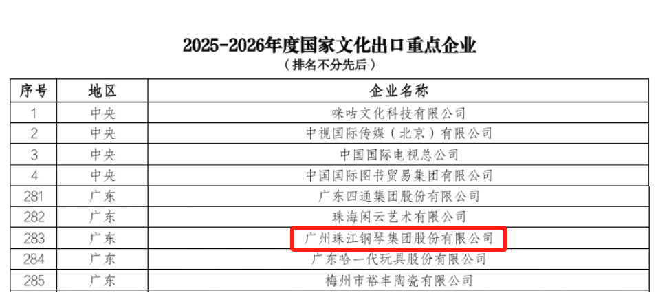珠江钢琴集团自2007年以来,已连续18年认定为“国家文化出口重点企业”,这不仅是对中国乐器品牌实力和产业竞争力的高度认可,更为行业未来发展注入强大动力。