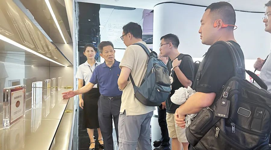午餐过后,李教授一行来到珠海展厅。展厅内陈列着我司的各类产品和创新成果,从核心专利到完整的智能设备,全方位展示了奋达科技在行业内的技术实力和创新能力。李教授一行仔细聆听讲解,不时询问产品的性能特点、应用场景以及市场反馈等信息。他们对展厅中展示的一些前沿技术和创新产品表现出极大的关注,并就相关技术原理和市场前景与我司人员进行了深入交流。