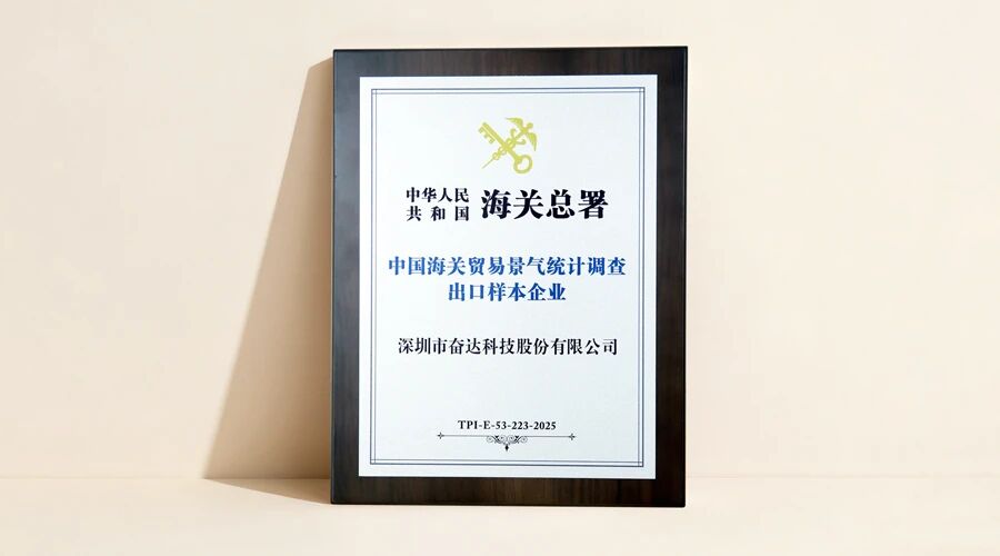 日前,我司正式获 中华人民共和国海关总署 “中国海关贸易景气统计调查出口样本企业”授牌,这标志着 奋达科技 在出口领域的规范经营、行业贡献及数据价值得到了国家权威机构的高度认可与信赖。