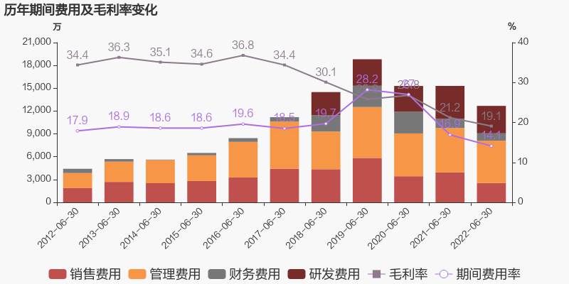 公司2022半年度营业成本7.26亿元,同比上升1.8%,营业收入同比下降0.8%,毛利率下降2.1%。期间费用率为14.1%,较去年下降2.8%。经营性现金流大幅下降68.6%至1130万元。