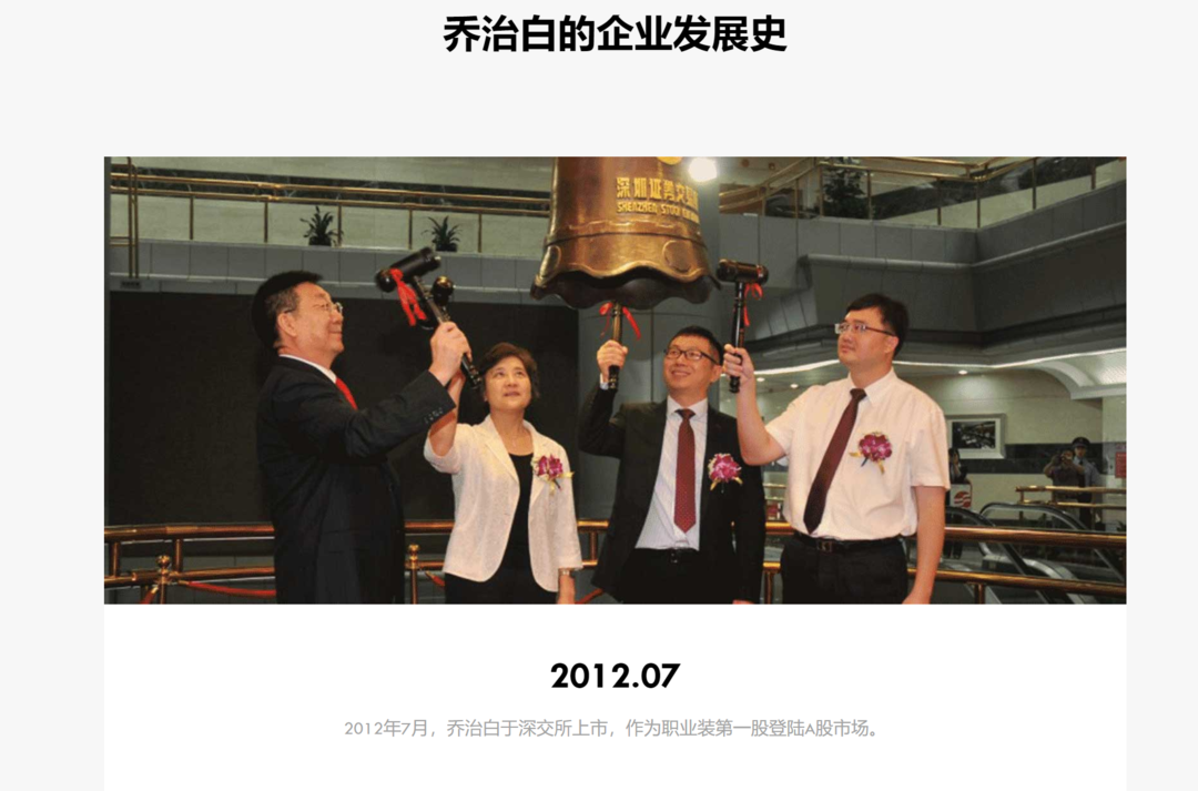 扬子晚报/紫牛新闻记者查询,浙江乔治白服饰股份有限公司成立于2001年,于2012年在深交所上市。公司总部位于浙江省温州市。查询公司网站可见,2012年7月,乔治白于深交所上市,作为职业装第一股登陆A股市场。