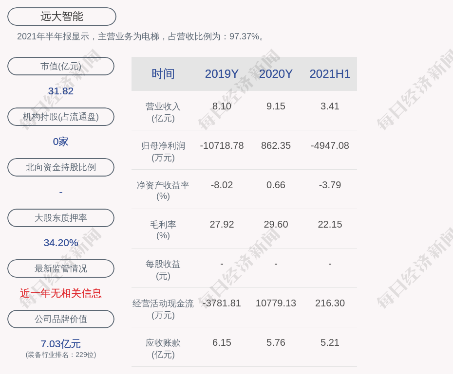 2021年半年报显示,远大智能的主营业务为电梯,占营收比例为:97.37%。