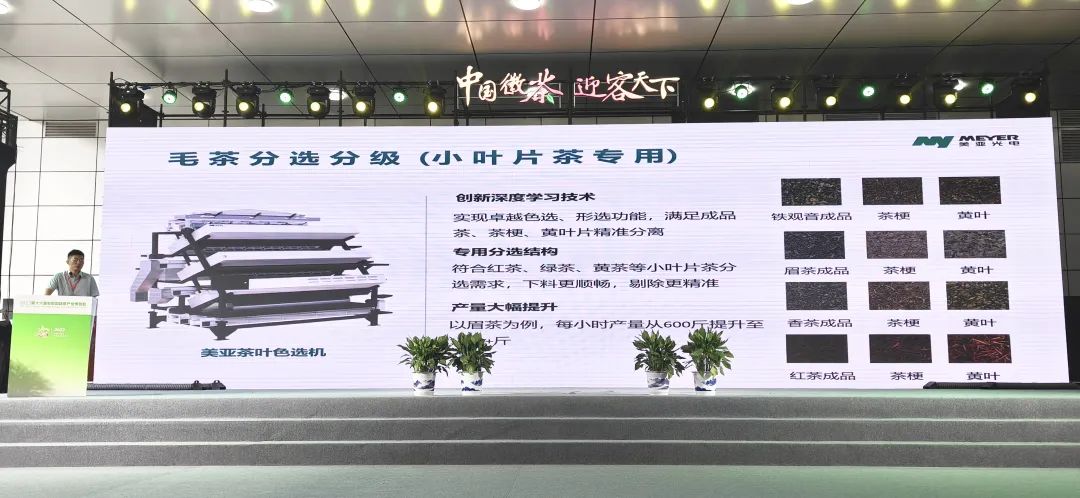 本次会议,美亚光电还作为独家茶机械领域代表,在专场推介会上分享了产品的应用场景,再次受到了相关部门及茶企代表的肯定。