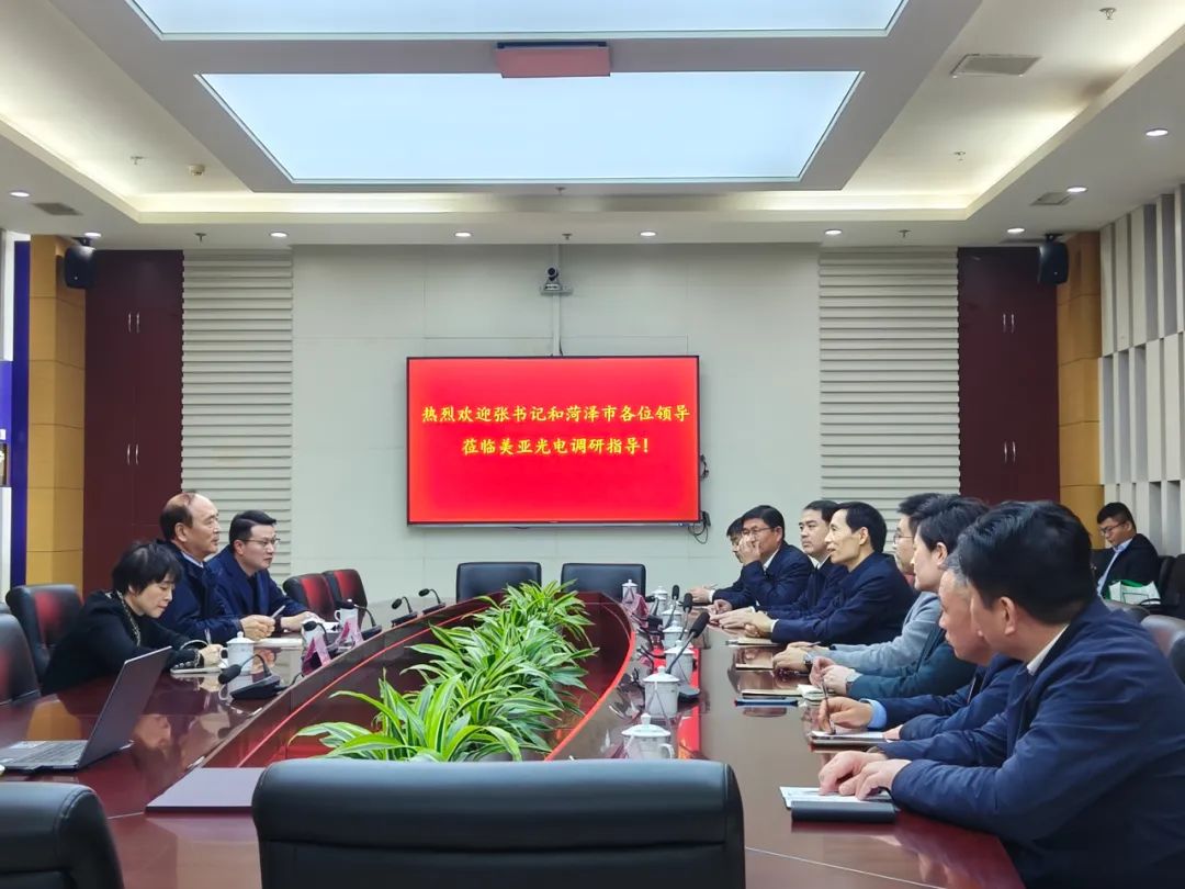 3月27日,山东菏泽市委书记张伦一行莅临美亚光电调研,合肥市高新区党工委委员、管委会副主任刘登银陪同调研。公司董事长田明、副董事长兼总经理沈海斌热情接待。