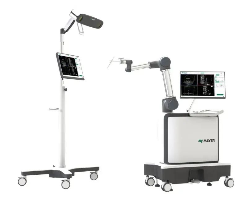 美亚脊柱外科手术导航定位设备,适用于脊柱外科手术中手术器械和植入物的精准导航定位。该产品拥有智能自学习软件系统,能够通过高效的手术路径规划为医生持续“减负”;配备3D双目视觉跟踪技术,辅以六轴关节机械臂,能够更好地引导医生进行弓根螺钉置入,助力手术更精准、更安全;同时,能够实现小孔切口下更好地观察手术区域,减少术中出血,减轻患者疼痛,缩短康复周期,支持了微创脊柱手术的应用推广。