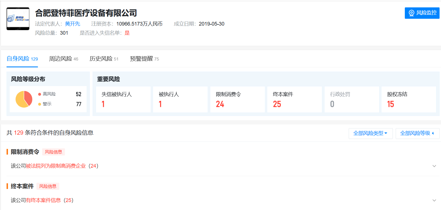 此外,登特菲目前被法院列为限制高消费企业,为失信被执行人,有25条终本案件,执行标的金额在1.77万元至175.34万元不等,有9笔在其他企业持有的股权被冻结,黄开先等股东的部分股权也被冻结。时代周报记者1月6日下午尝试登陆登特菲官网,但一直显示“无法访问此页面”。