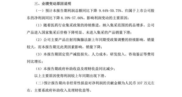 2025 年 1 月 17 日,双成药业发布 2024 年度业绩预告。公司预计 2024 年利润总额亏损 8000 万元- 11000 万元,归母净利润亏损 5500 万元- 8000 万元,相较于上年同期下降 8.39%- 57.66%。这一业绩表现,无疑给本就处境艰难的双成药业雪上加霜。利润变动的背后,是诸多不利因素的交织。医药集采政策持续推进,公司产品进入集采后价格骤降,未集采产品销量也随之下滑;主要产品注射用胸腺法新受前期政策调整余波影响,销量持续走低;同时,固定资产减值损失、人力成本、研发投入等费用却在不断攀升,政府补助收益及理财收益又同比减少,这些因素共同作用,导致公司利润大幅下滑。