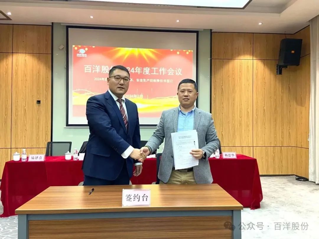 最后,刘康总经理与各子公司负责人共同签署了2024年度业绩目标责任书和安全生产目标责任书。