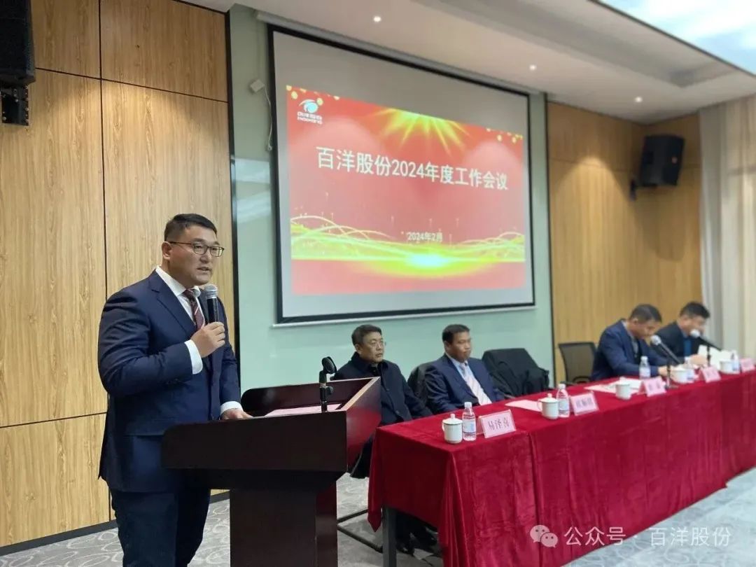 2024年2月26日,百洋股份组织召开2024年度工作会议,百洋股份总经理刘康及集团领导班子成员、各部门、各事业部和各子公司相关负责人、受表彰人员代表等参加会议。集团常务副总经理刘莹主持会议。