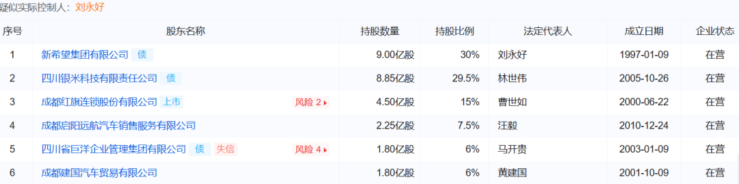 新网银行的来头也不小,是继微众银行、网商银之后全国第三家互联网银行、四川首家民营银行。该行股东阵容亦强大,背后是新希望集团的老大刘永好,红旗连锁则在其中持股15%。