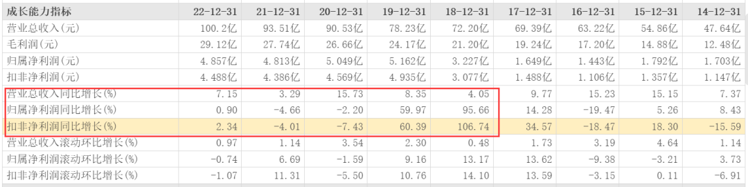不过另一边,红旗连锁的利润指标则没那么好看,2020、2021年同比都出现负增长,2022年仅增长0.9%。