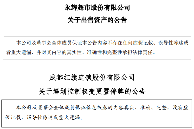 红旗连锁则披露,该司实控人正在筹划控制权转让事宜。鉴于该事项正在洽谈中,目前尚存重大不确定性,公司股票自12月14日(星期四)起停牌,预计停牌时间为两个交易日。