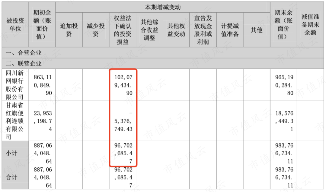 主要是长期股权投资中四川新网银行的的增值带来的,以2022年为例,红旗连锁持有的四川新网银行增加了1.02亿的投资收益。