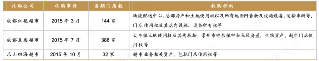 2015年,红旗连锁通过收购成都红艳超市、成都互惠超市、乐山四海超市,扩张了门店网点,填补了公司在雅安、乐山、泸定、康定、江油等部分区域的市场空白。