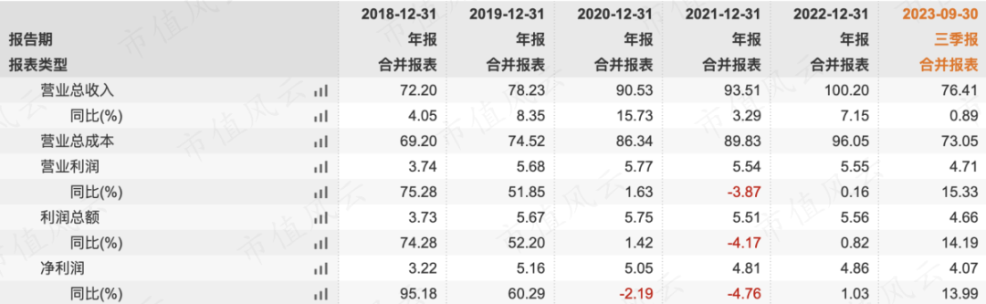 今年也没问题,2023年前三季度,红旗连锁净利润就有4.07亿,同比增长13.99%,收入为76.41亿,同比增长0.89%,弱增长。