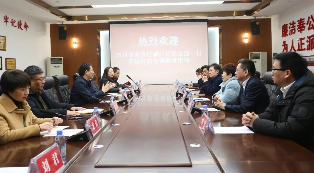 2月27日上午,按照省委省政府的安排部署,四川省商务厅副厅长陈友清一行到红旗连锁总部调研,通过实地走访,当面倾听了解上市公司诉求,帮助企业解决问题,助推企业高质量发展。成都市商务局中日项目办专职副主任李玉萍,省商务厅消费促进处、流通业处、服务业处负责同志随同调研。