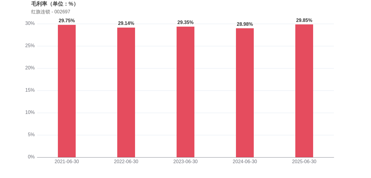 从反映盈利质量的指标来看,红旗连锁净利率由2024年上半年的5.14%提升至5.84%,毛利率从28.98%提升至29.85%,但净资产收益率为6.13%,同比下降0.19个百分点。