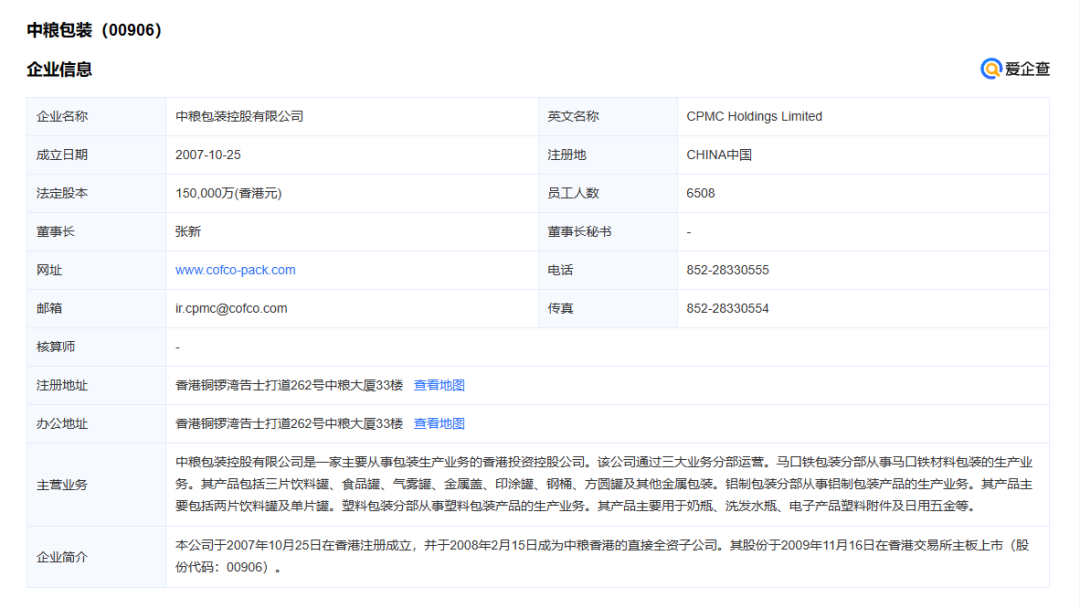 中粮包装作为一家投资控股公司,其附属子公司在中国生产食品、饮料及日化产品等消费品包装,拥有完整的产业布局,在多个细分市场居于领先地位,同时与奥瑞金科技股份有限公司有着紧密的合作关系。科印网就公开资料梳理如下: