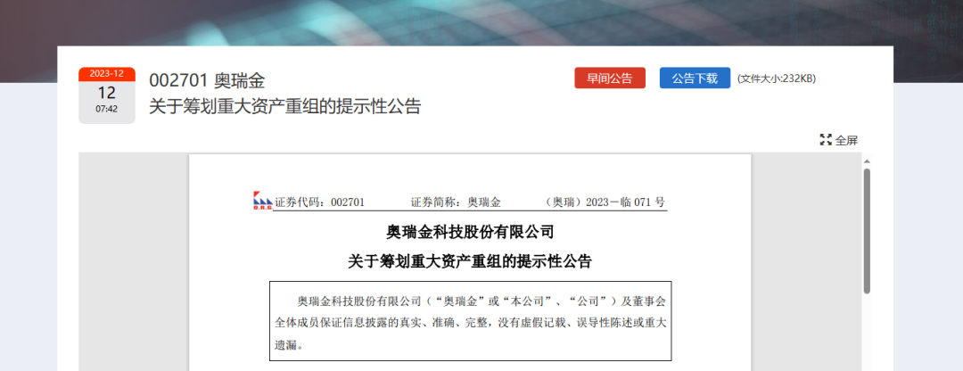 12月12日早间,奥瑞金发布公告称,公司正在筹划向香港联交所上市公司中粮包装控股有限公司全体股东发起自愿有条件全面要约,以现金方式收购中粮包装全部已发行股份。