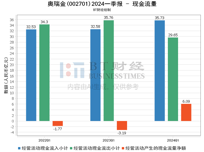 现金流量方面,奥瑞金的经营活动产生的现金流量净额为6.09亿元,而上年同期为-3.19亿元,显示出显著改善。经营活动现金流入小计为35.73亿元,同比增长9.71%;现金流出小计为29.65亿元,同比减少17.11%。投资活动产生的现金流量净额为-1.21亿元,上年同期为-0.89亿元,主要系本期处置资产收到的款项减少所致。筹资活动产生的现金流量净额为-3.11亿元,上年同期为-0.64亿元,主要系本期实施了股份回购和融资租赁还款增加所致。这些数据表明,奥瑞金在经营活动中的现金流管理取得了显著成效,但在投资和筹资活动中仍需进一步优化。