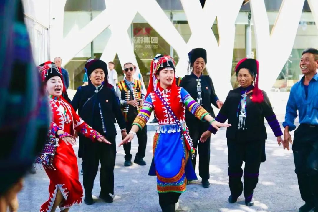 活动最后,哈尼族一行游客在众信旅游集团外驻足拍照留念,兴起之时更是载歌载舞,共同演绎了一场民族文化盛宴。本次接待活动不仅为众信旅游集团带来了全新的发展机遇,也为多民族融合发展注入了新的动力。