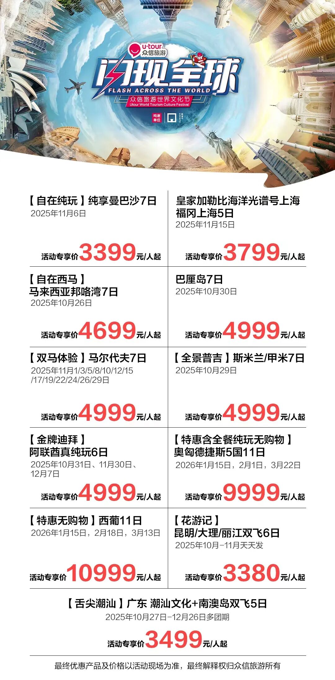 作为中国领先的旅游综合服务商,众信旅游首次整合全球顶级旅游资源,携手全球多国旅游局及合作伙伴,强势打造“闪现全球”这一独家活动IP,将世界风情呈现至游客身边,为旅游圈层注入全新活力,掀起新一轮的旅行热潮。