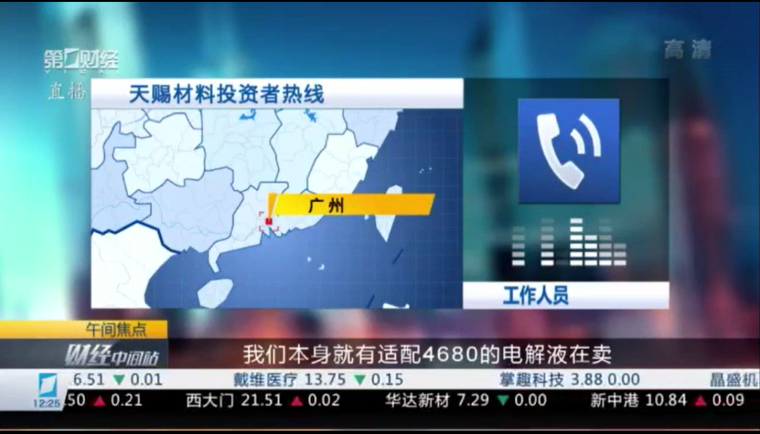 这一背景下,国内外头部锂电池供应商正加速推进4680电池产线建设。第一财经记者以投资者的身份致电天赐材料,公司表示,目前有适配4680电池的电解液在售,但是4680电池目前并没有大规模量产。