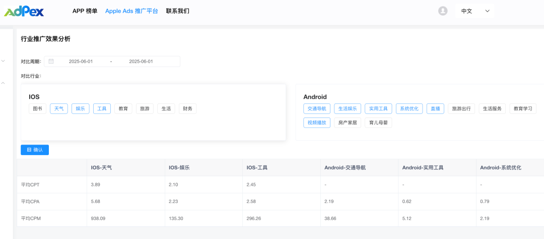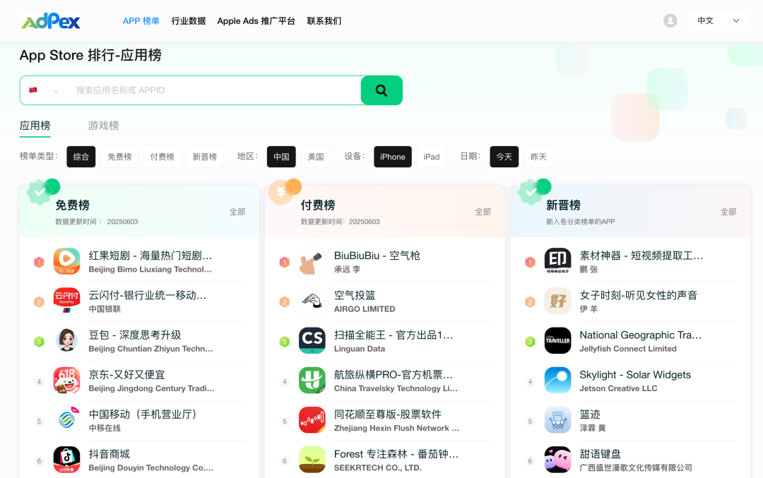 AdPex整合iOS及Android推广多年数据积累,构建强大的行业分析系统。通过精准策略优化,全面提升广告主投放Apple Ads投放效能: