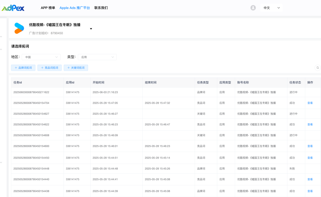 AdPex是由八方腾泰倾力打造的Apple Ads 广告智能投放平台,集智能化、一站式与高效能于一体。作为专注于提升Apple Ads效果的创新产品,AdPex以智能拓词、创意拓新、无限扩展为核心理念,全面覆盖广告主投放全生命周期中的各项需求。通过深度整合八方多年行业洞察与技术优势,AdPex致力于为广告主实现高效投放、精准覆盖与降本增效。