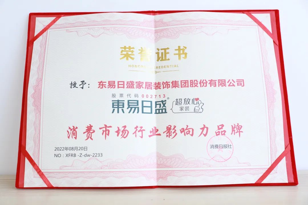 “消费市场行业影响力品牌”称号,东易日盛实至名归!