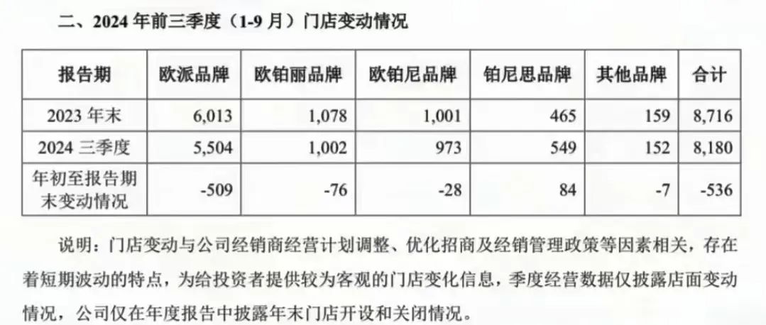面对业绩下滑的压力,上市家居企业纷纷寻求转型。优化低效门店成为常见做法。以定制家居行业为例,2024年前三季度,九大上市定制企业门店数量均有不同程度收缩,其中欧派家居的闭店数量更是超过500家。