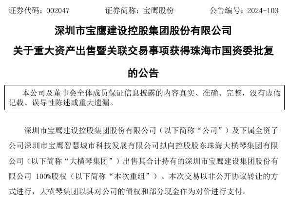 与此同时,宝鹰股份也计划将旗下公司宝鹰建设出售给控股股东,以收缩增长乏力的传统建筑装饰工程领域。
