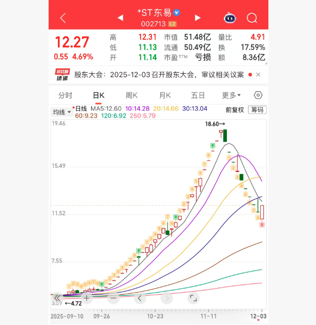 回溯过往走势,* ST东易 曾凭借重整预期及算力资产注入成为资本市场焦点。9月29日起,该股开启暴涨模式,29个交易日内斩获24个涨停板,从5元附近飙升至18元以上,区间涨幅接近260%。
