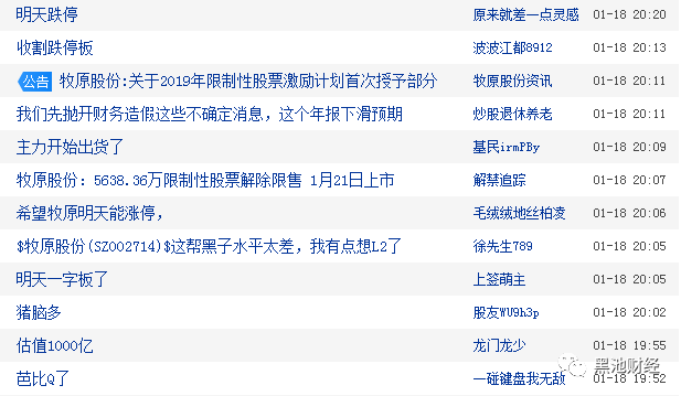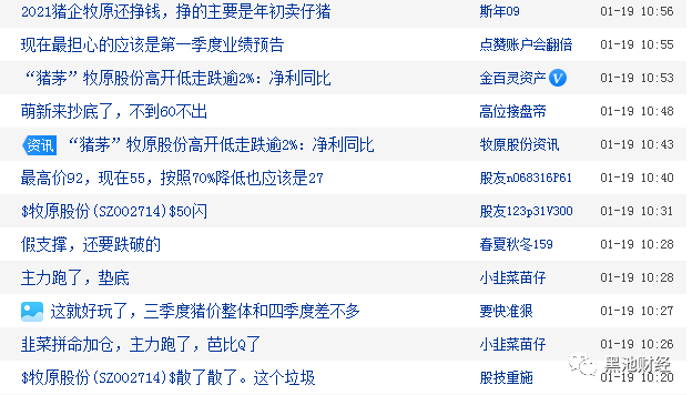 这也让牧原股份的近30万股民慌了神,“完了,撑不起这个市值了”、“韭菜拼命加仓,主力跑了,芭比Q了”,还有的股民直言,“现在最担心的应该是第一季度业绩预告”。