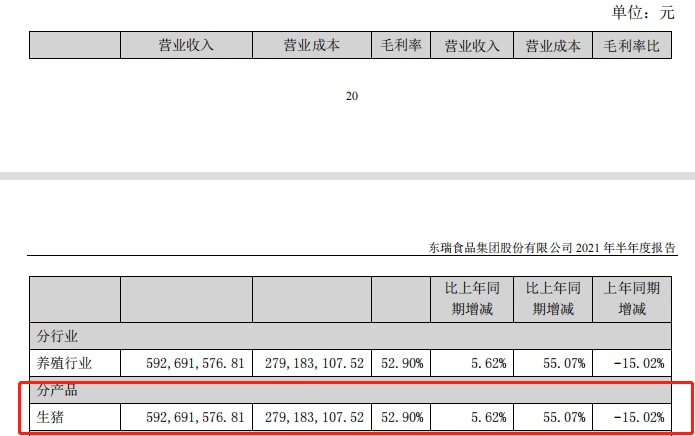 更惊人的是东瑞股份2021上半年生猪的毛利率居然超过50%,比同期的牧原股份还高18个百分点。
