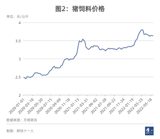 2021年,猪周期下行(图1),饲料价格上升(图2),剪刀差下,A股“四大猪王”受伤颇重。