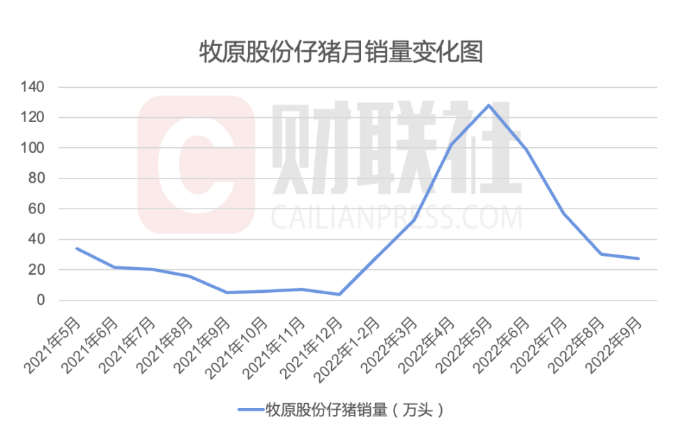 对此,牧原股份相关人士向财联社记者表示:“9月生猪销量下降主要原因在于公司3、4月份对外出售较多仔猪所致。”根据此前简报,牧原股份在3月仔猪销量开始大幅增长,5月仔猪销量达到顶峰128万头。