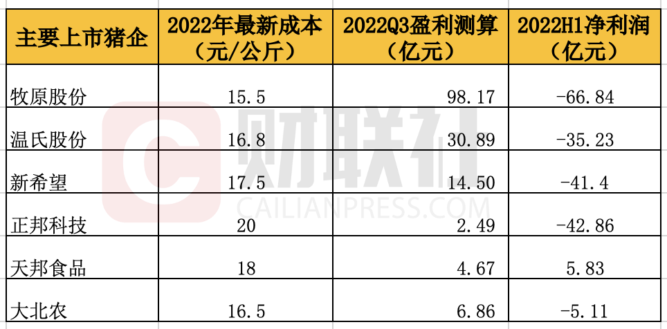 (财联社记者通过各公司公开收入、养殖成本、销售均价和数量简单测算,不代表投资建议)